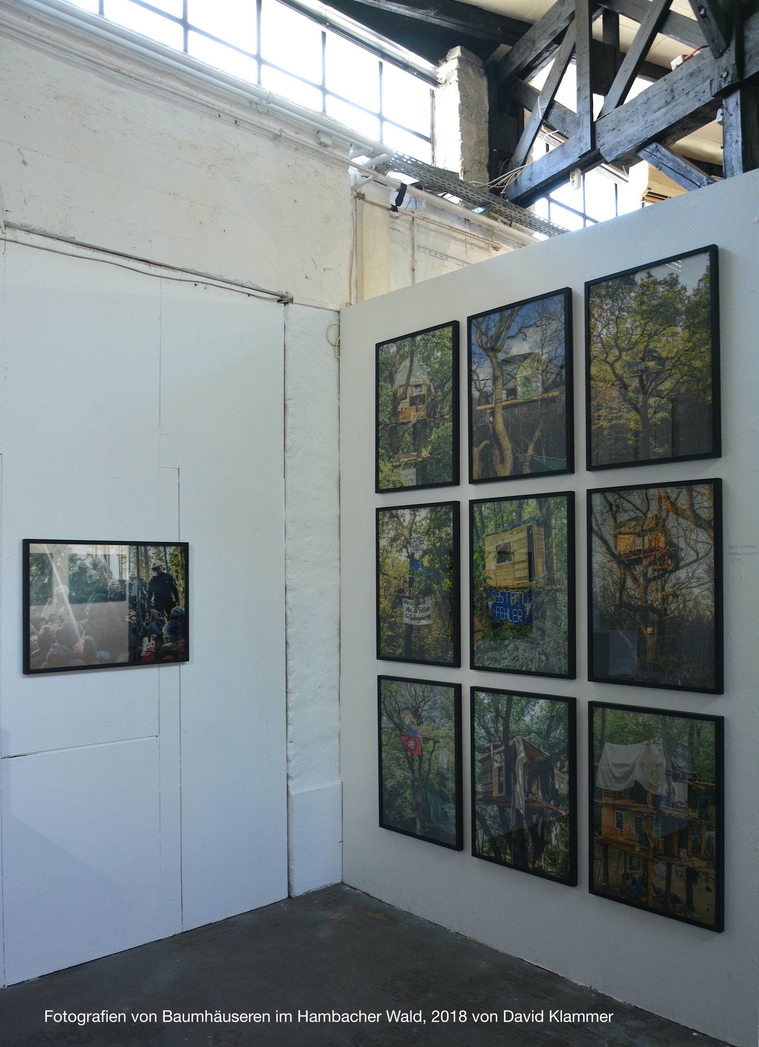 Wir sind in der Ausstellung mit 4 sehr großformatigen Malereien aus verschiedenen Wäldern, 5 Gemälden aus dem Widerstand HAMBACHER WALD und einer Kleinplastik HA(M)BITATE vertreten.