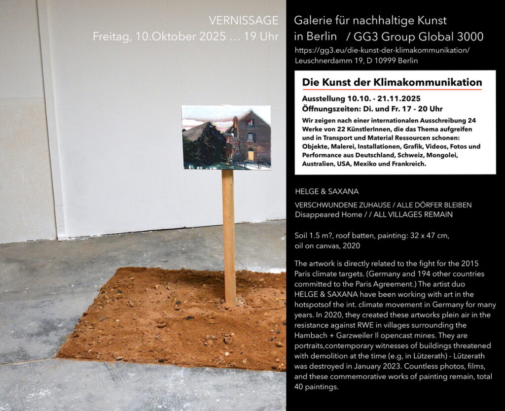 ALLE DÖRFER BLEIBEN ist der hoffnungsvolle Name der Widerstandsbewegung im Rheinischen Braunkohletagebau und gleichzeitig der Titel dieser besonderen Kunstausstellung, die im Rahmen dessen in Keyenberg … im Sommer 2020 stellvertretend für alle bedrohten Dörfer … Manheim / Immerath / Berverath / Keyenberg / Lützerath … stattfand.