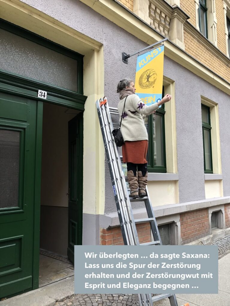 Saxana ist dort mit dem besonders bemerkenswerten Gemälde SÜNDENWÄLDCHEN BLEIBT 240 x 180 cm / Öl auf Leinwand vertreten.