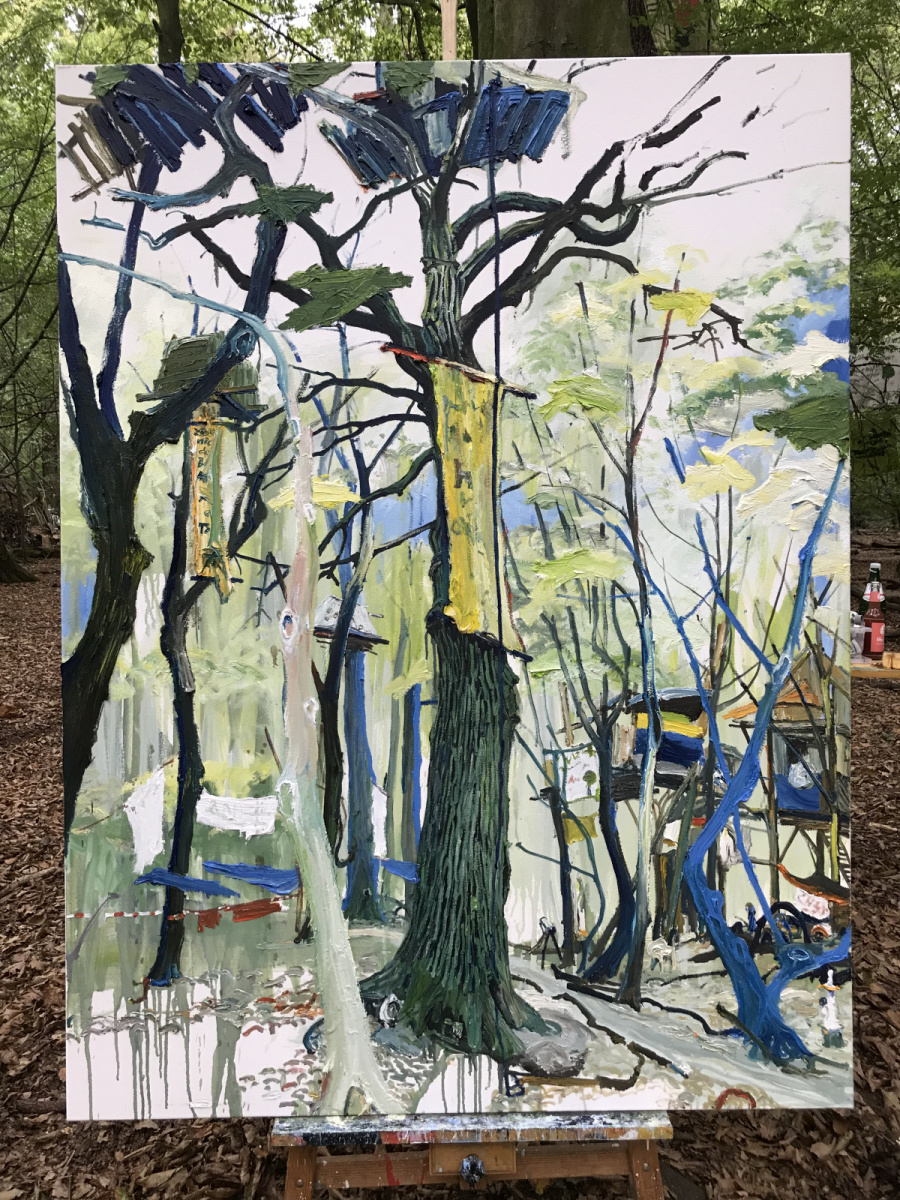 2018 rief uns unser befreundeter Kunstprofessor Wolfgang Becker aus Aachen an, ob wir uns nicht mit den todgeweihten Bäumen und aktuellen Geschehnissen im HAMBI auseinandersetzen wollten.