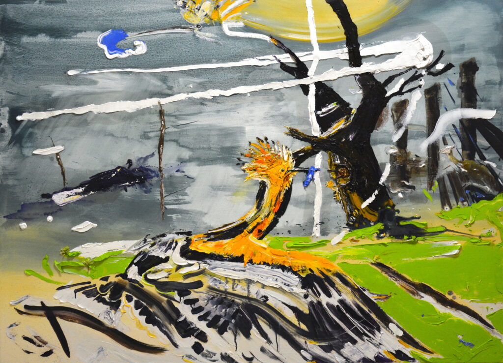 … ein neues Gemälde ist fertig geworden. Es trägt den Titel: MORGEN WIRD EIN GUTER TAG … Ein Zusammenspiel diverser Gedanken aus unseren Aktionen im Widerstand im HAMBACHER WALD … im DANNERÖDER WALD … ALLE DÖRFER BLEIBEN … … und – und – und … , die uns ermutigen weiter zu machen, waren für mich der Anlass im fruchtbaren Diskurs mit Saxana, dieses Gemälde zu malen … Es ist 120 cm hoch und 240 cm breit / Ölfarbe auf Leinwand / April 2021